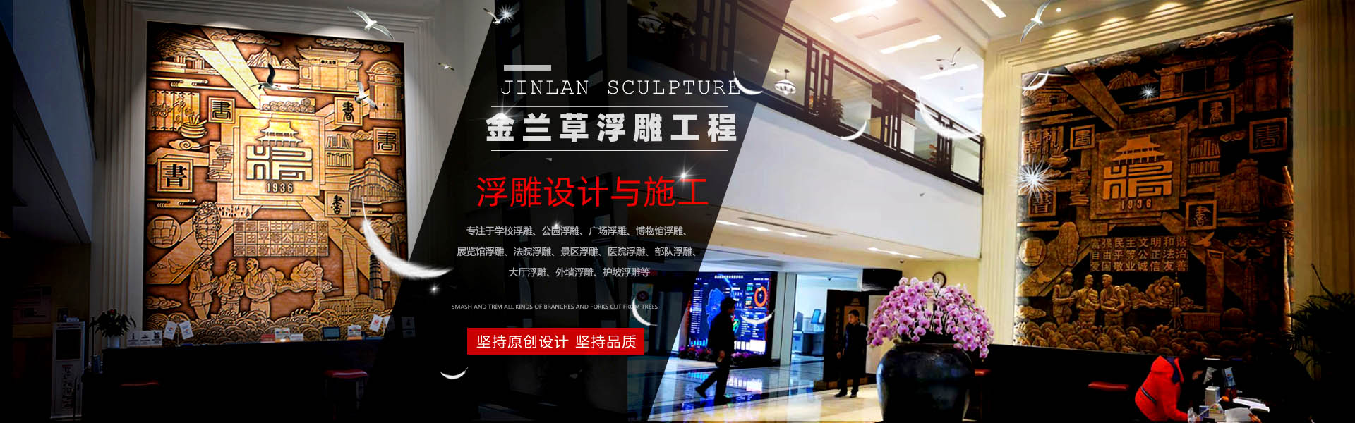 金蘭草浮雕專注于浮雕原創設計與定制服務,精雕細琢,力求精妙絕倫,服務中高端客戶。學校浮雕、公園浮雕、廣場浮雕、法院浮雕、景區浮雕、軍事浮雕、醫院浮雕、博物館浮雕、展覽館浮雕、大廳浮雕、外墻浮雕、護坡浮雕。